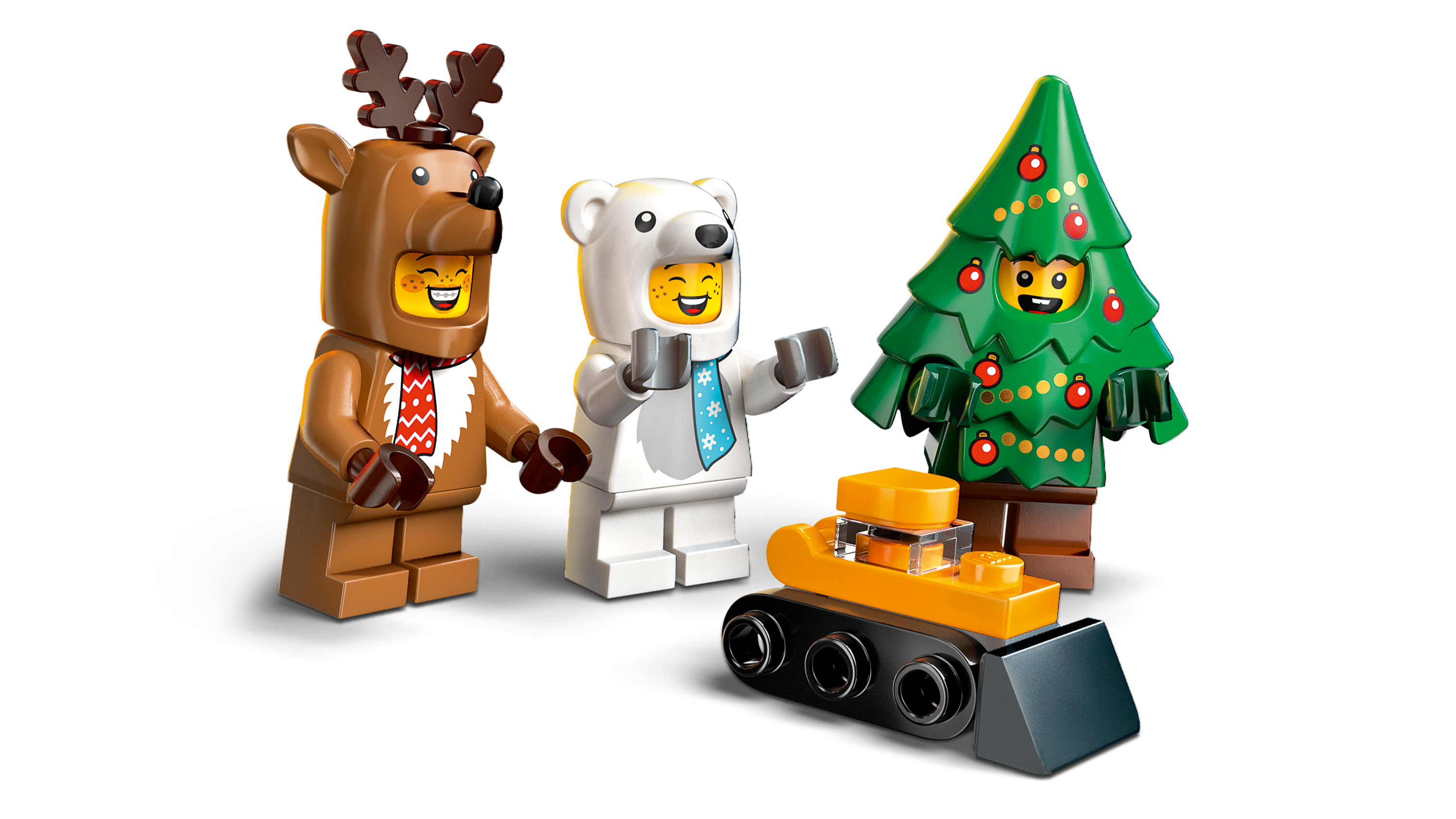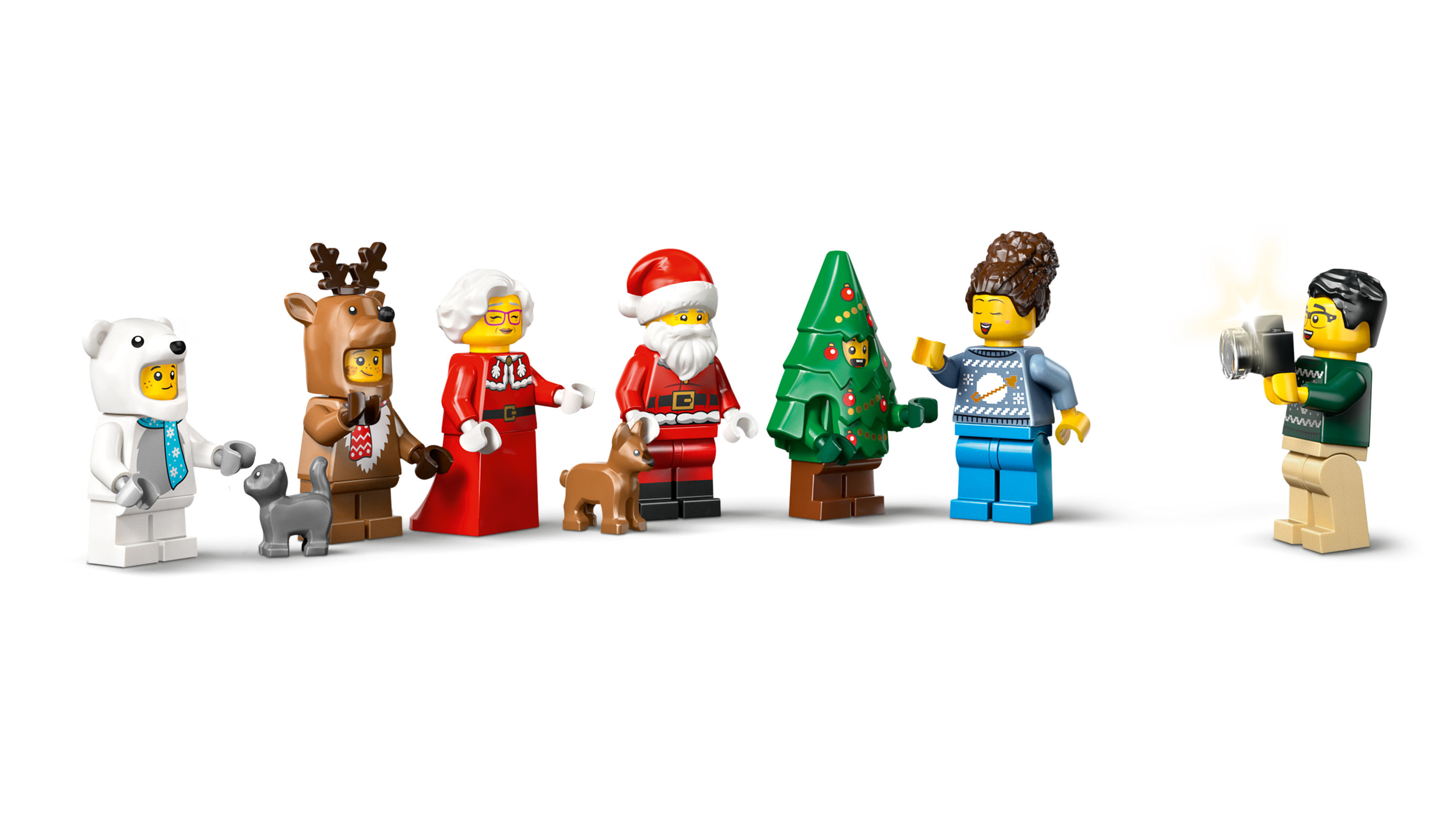 - Advent calendar gift set with 24 surprises – Includes Santa and Mrs. Claus minifigures, characters with polar bear, reindeer and Christmas tree costumes, mini builds and fun accessories