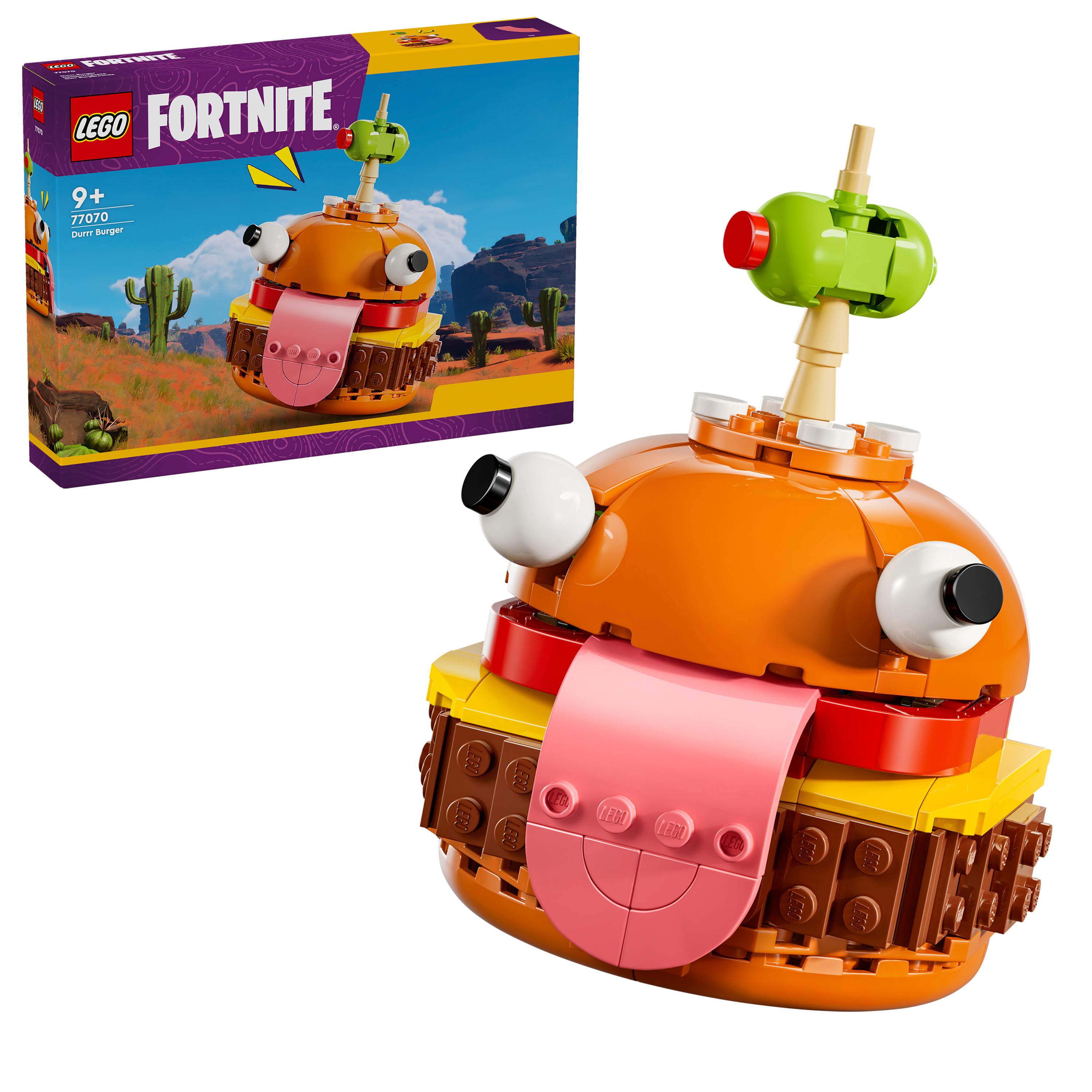 Feed creativity with the LEGO® Fortnite® Durrr Burger (77070), an awesome video game building set for gamers aged 9 and over. Based on the LEGO Fortnite video game, the set lets fans create a display model of Durrr Burger, the iconic restaurant mascot from the Fortnite universe. Young gamers will have loads of fun and victory well done building the model before discovering its exciting details, including the instantly recognisable eyes, tongue and olive on a toothpick. Once complete, the video game model becomes a cool collectible display toy that kids can showcase proudly in their bedroom or games room. A great gift for kids who love gaming and Fortnite fans of all ages, it’s sure to become a piece of treasured LEGO decor that unlocks gaming joy wherever it’s placed.