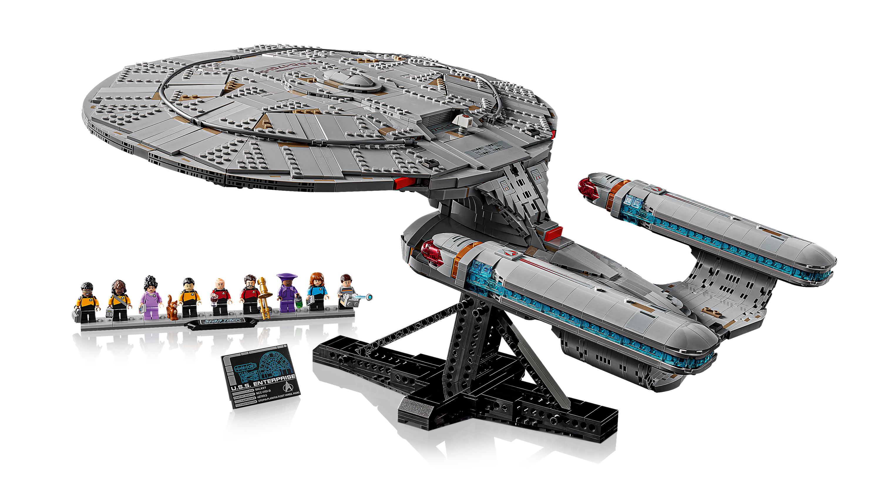 - Detailed replica of the Star Trek: U.S.S. Enterprise NCC-1701-D™ with 9 minifigures