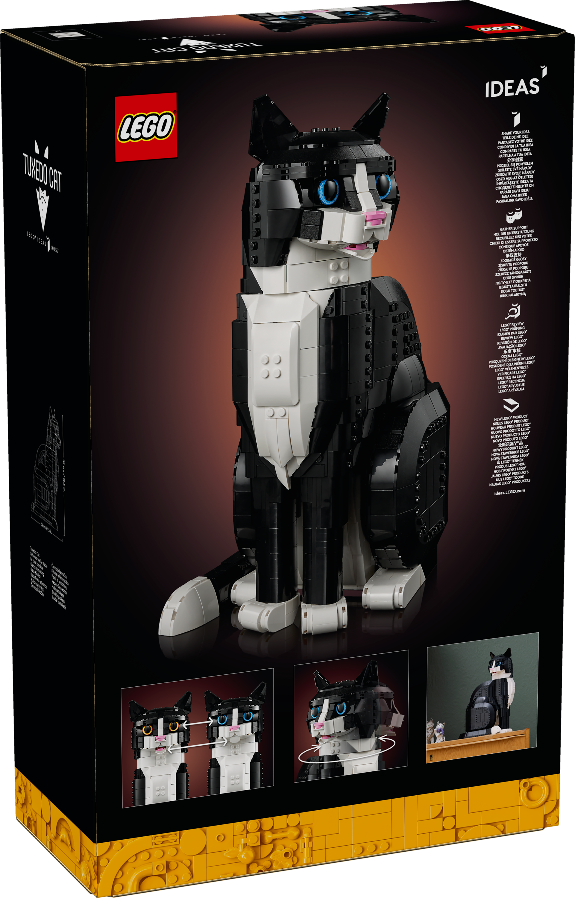 - Cat gift idea for adults – Build it yourself or invite other animal-lovers to create their own feline home decor with this brick-built LEGO® Ideas Tuxedo Cat statue