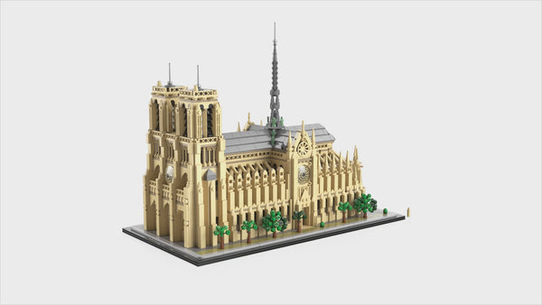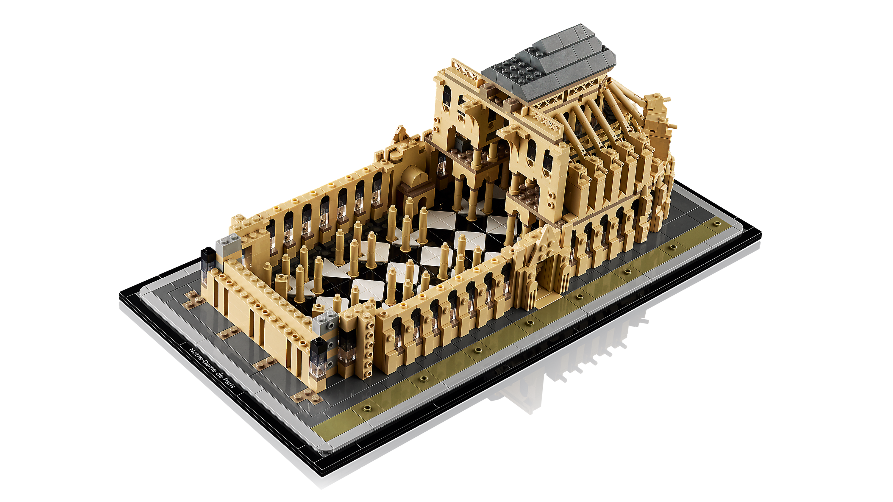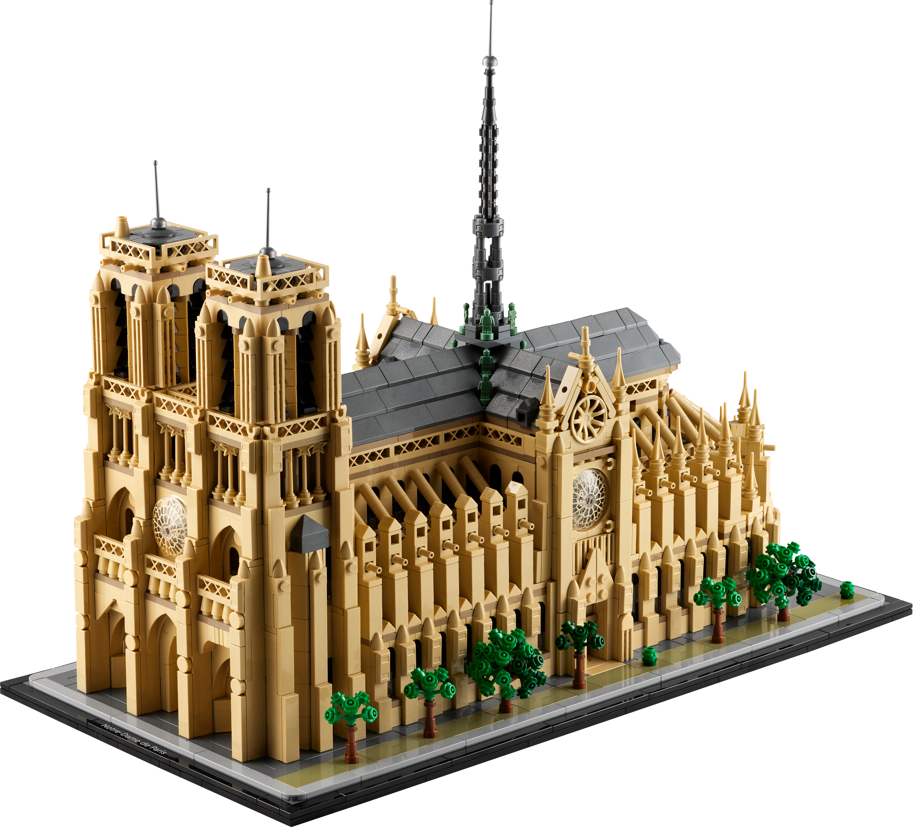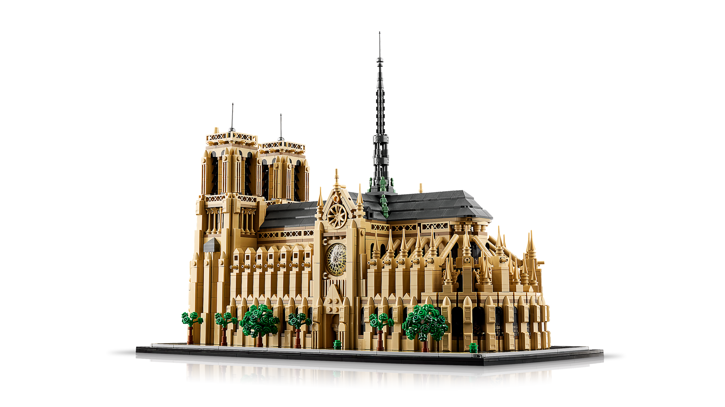 - Brick-built Notre-Dame collectible – This 4,383-piece display model measures over 33 cm (13 in.) high, 22 cm (8.5 in.) wide and 41 cm (16 in.) deep