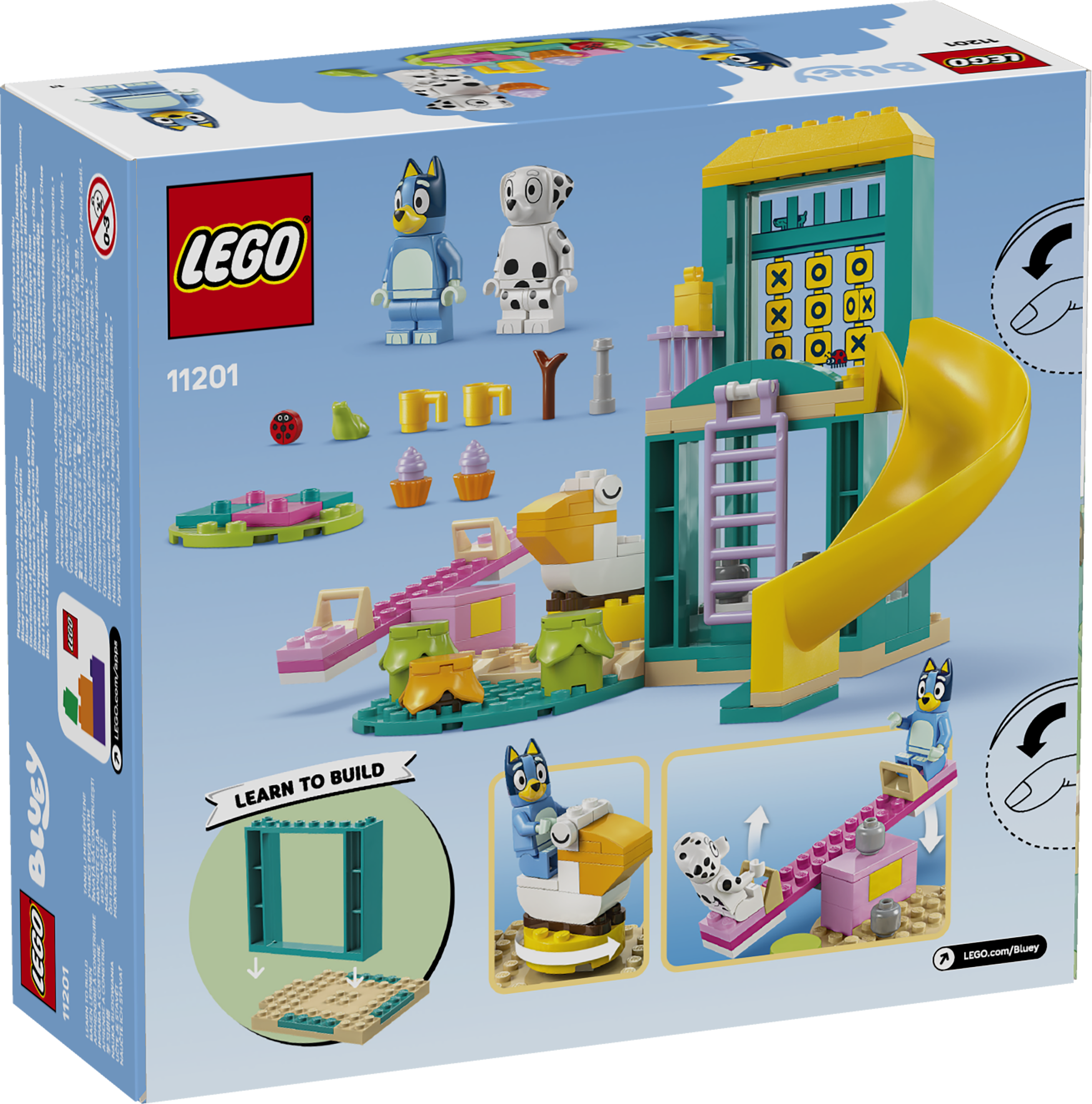 Kids aged 4 and over join Bluey and Chloe minifigure characters for fun on a slide, seesaw and other playground toys from the Bluey TV show.Key Features