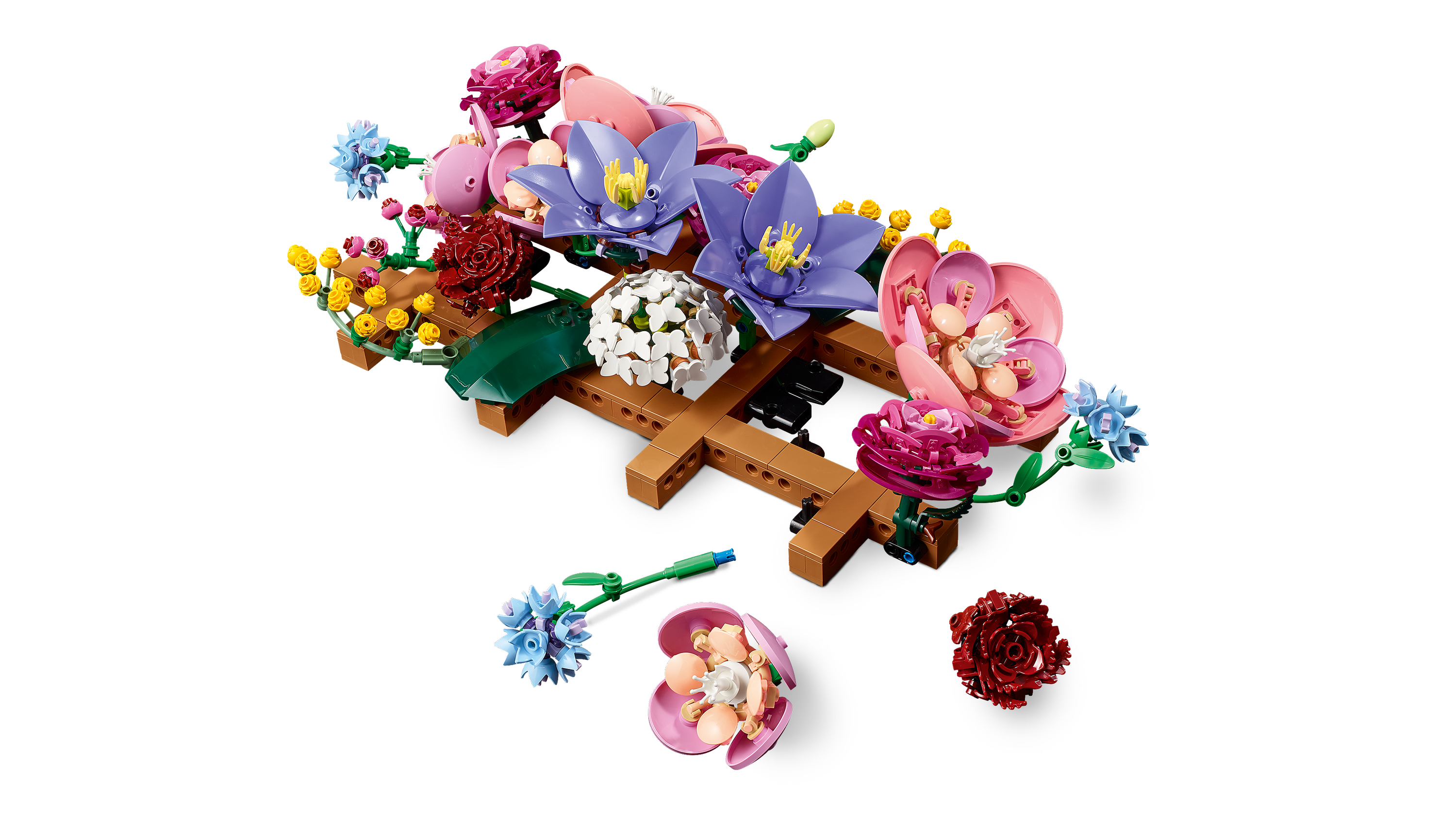 •Features 8 types of LEGO® flowers, including camellias, a cornflower and a rose