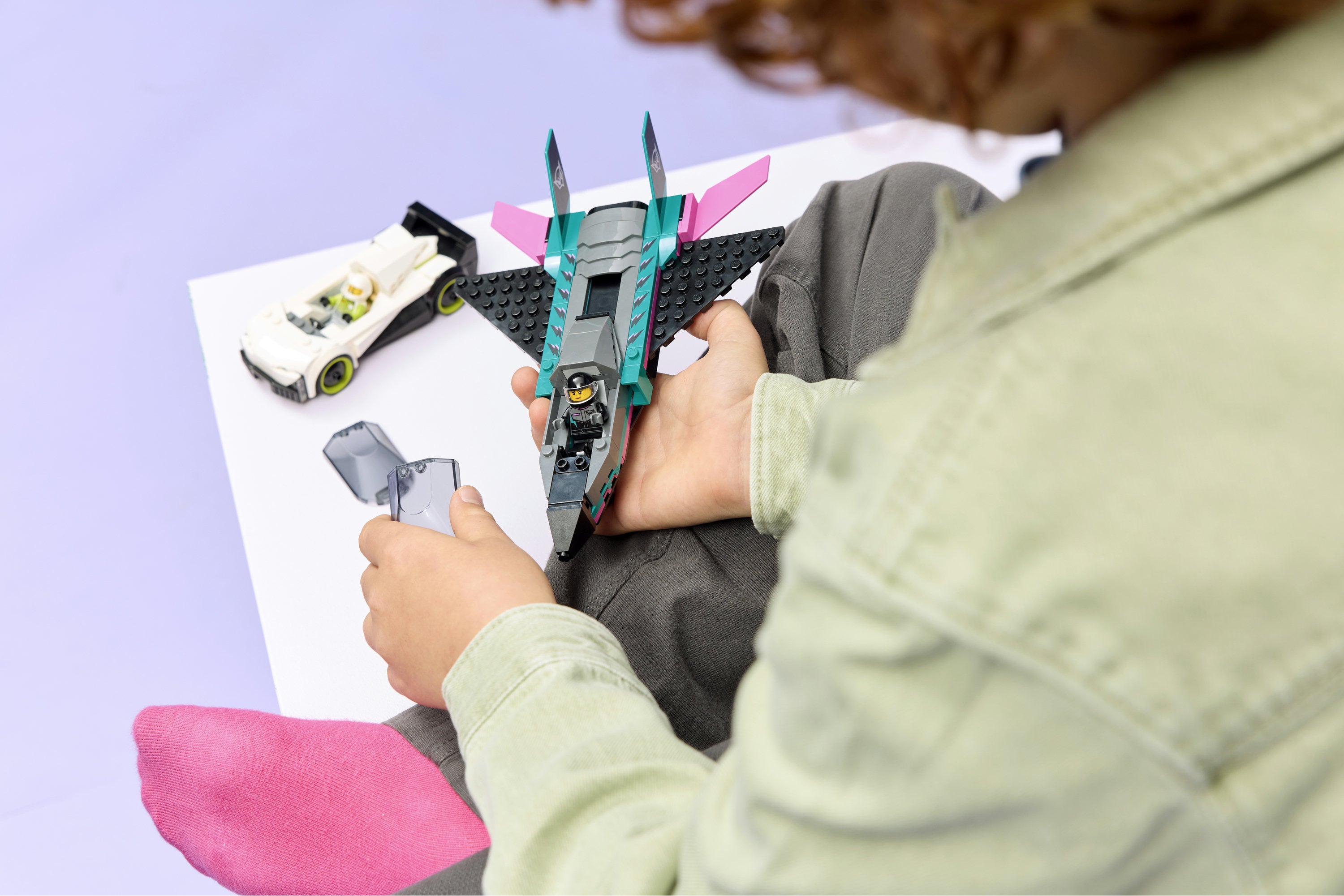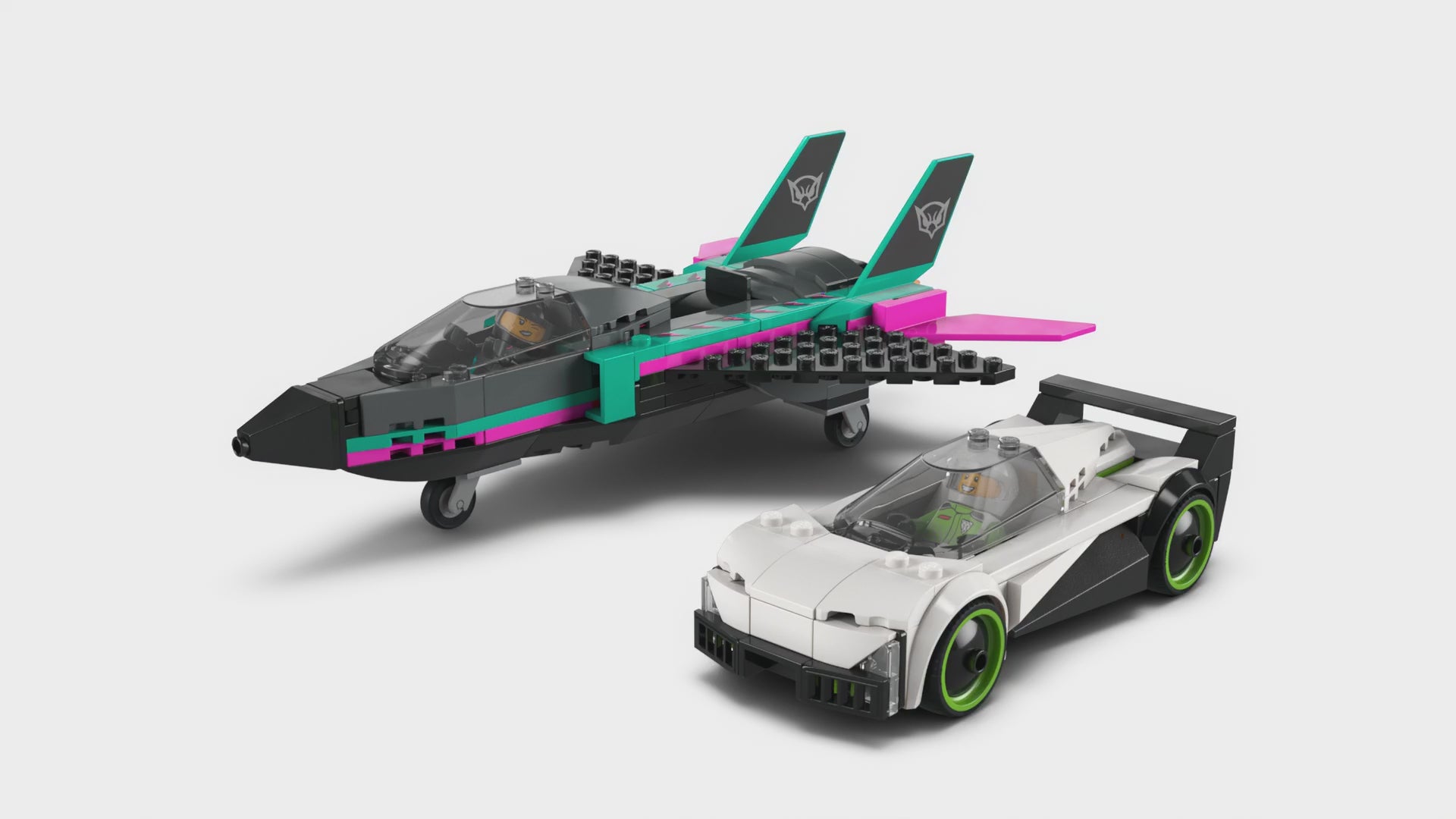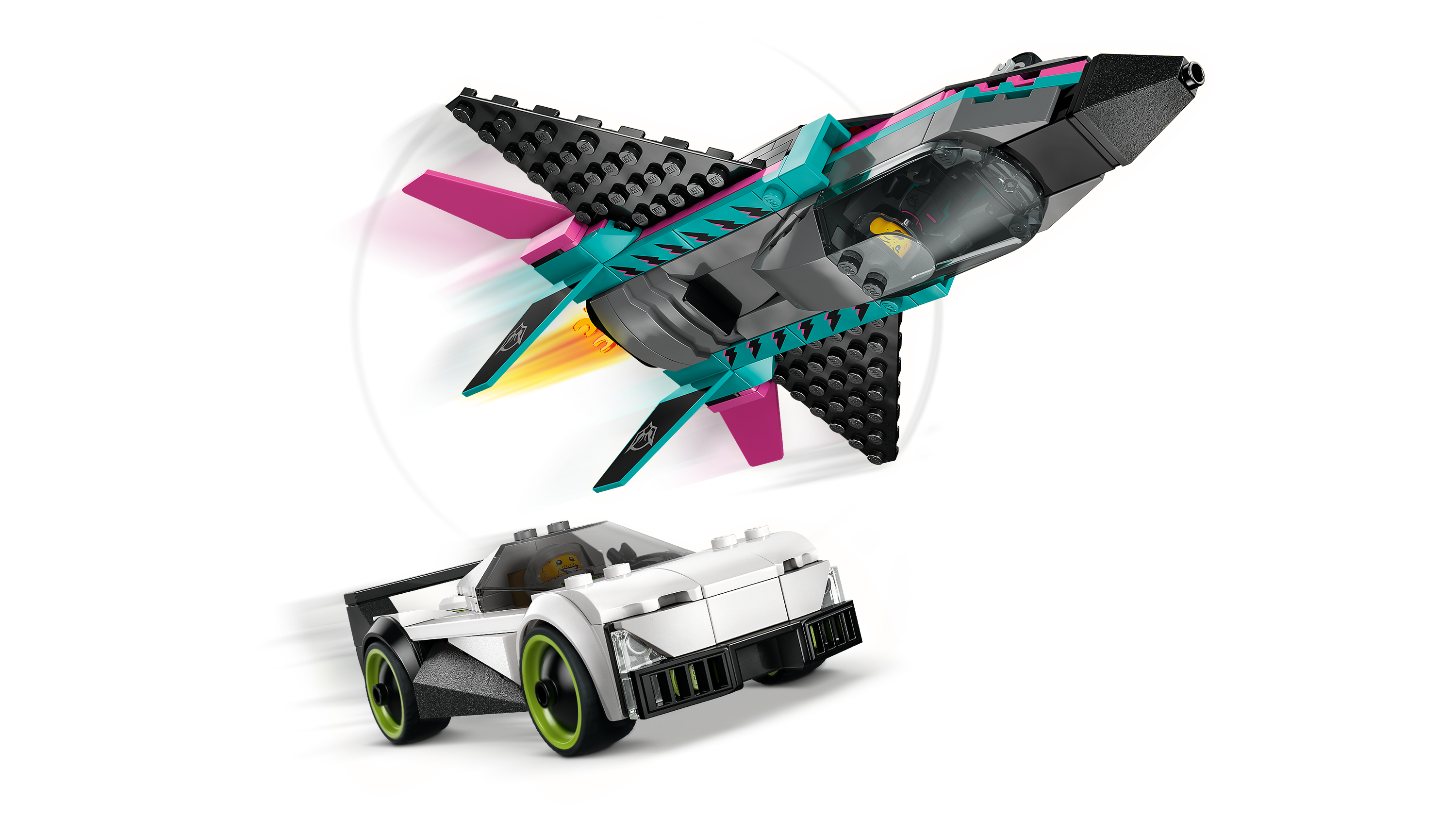 • Includes a buildable fast car and jet toy, plus pilot and driver minifigures