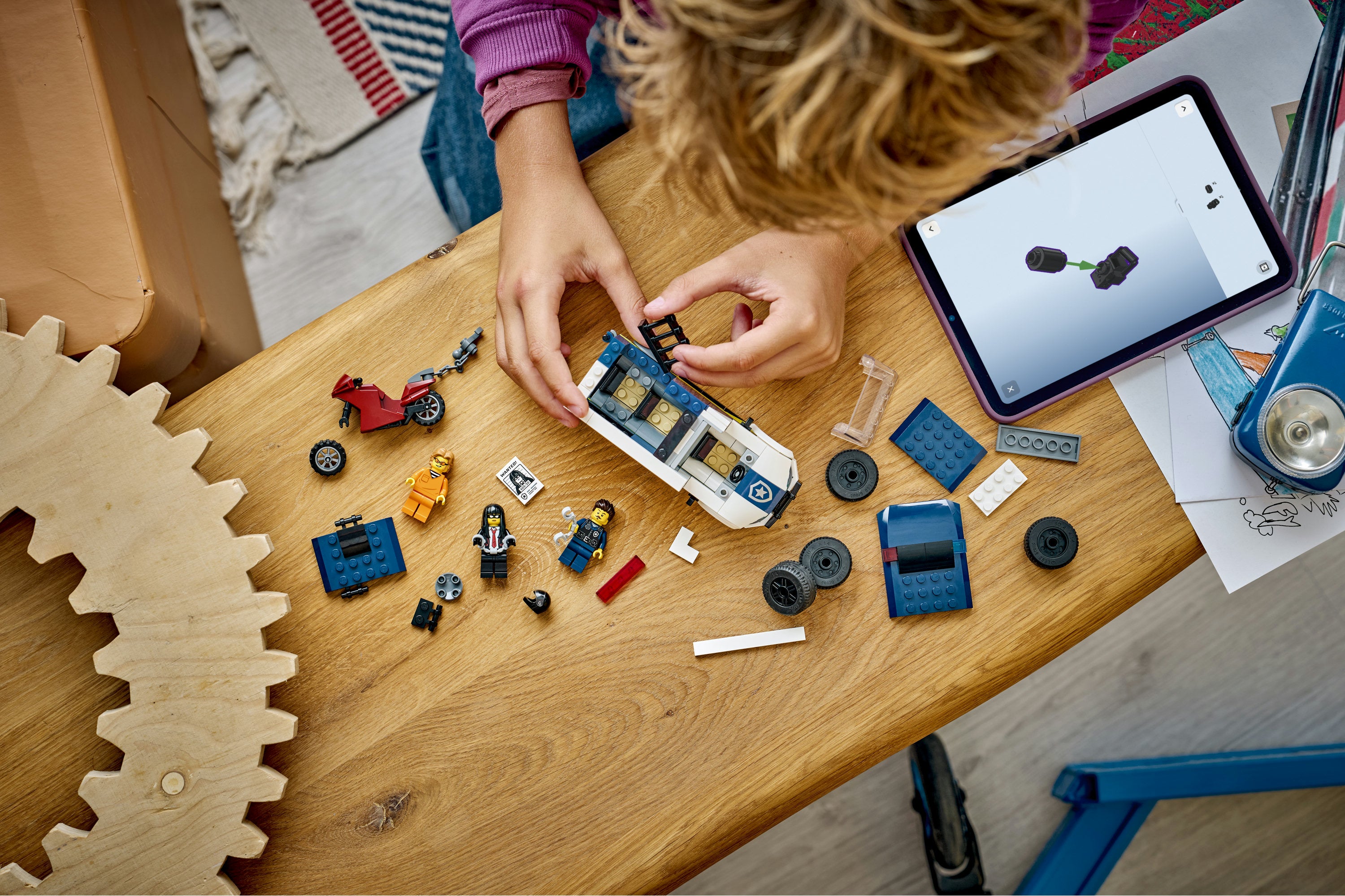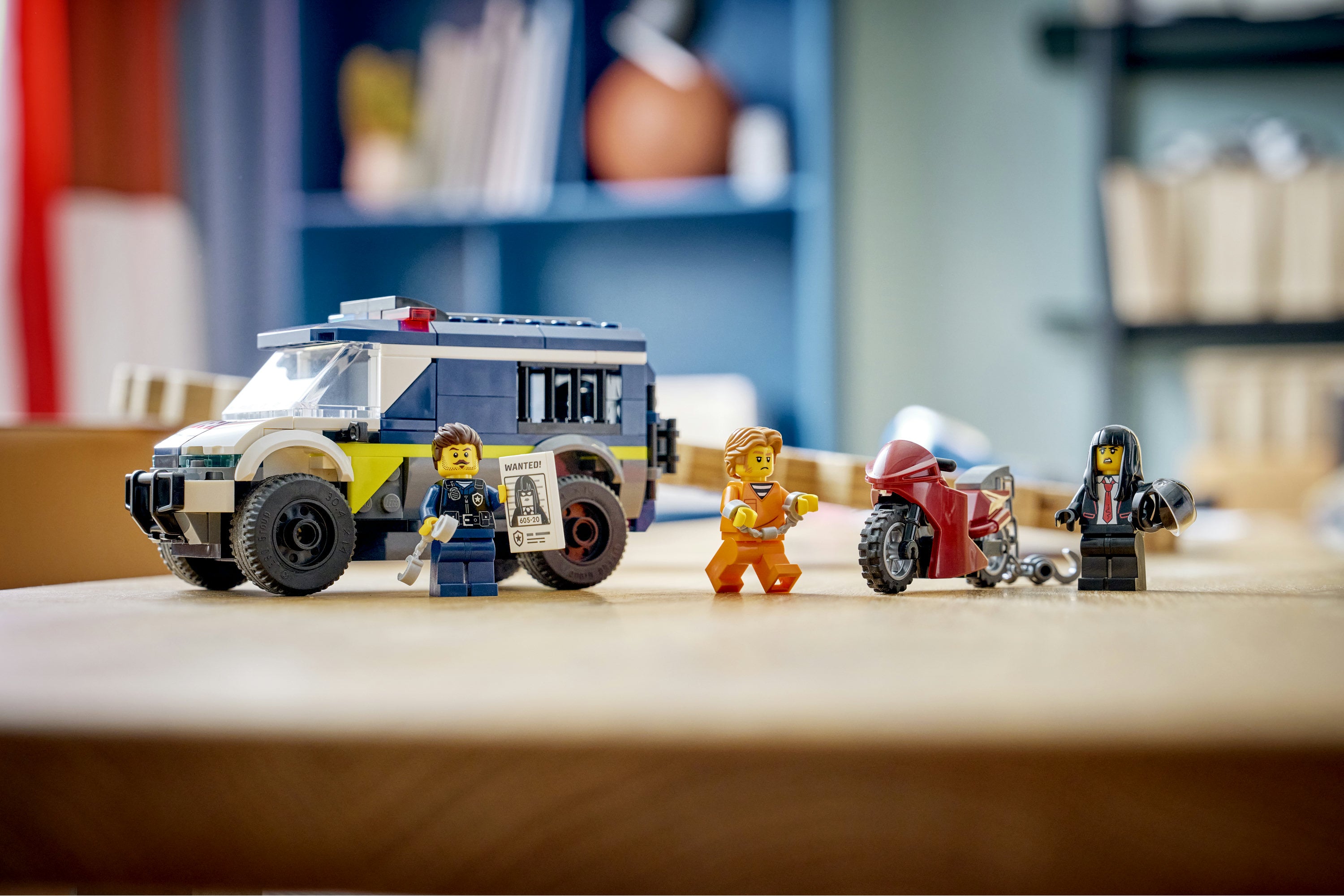 • Police van toy playset with a motorbike, police driver and 2 crook minifigures