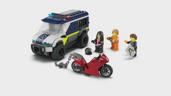 Treat your everyday hero to the LEGO® City Police Prisoner Transport Van set, including a toy motorcycle and 3 minifigures for epic jailbreak action.Key Features