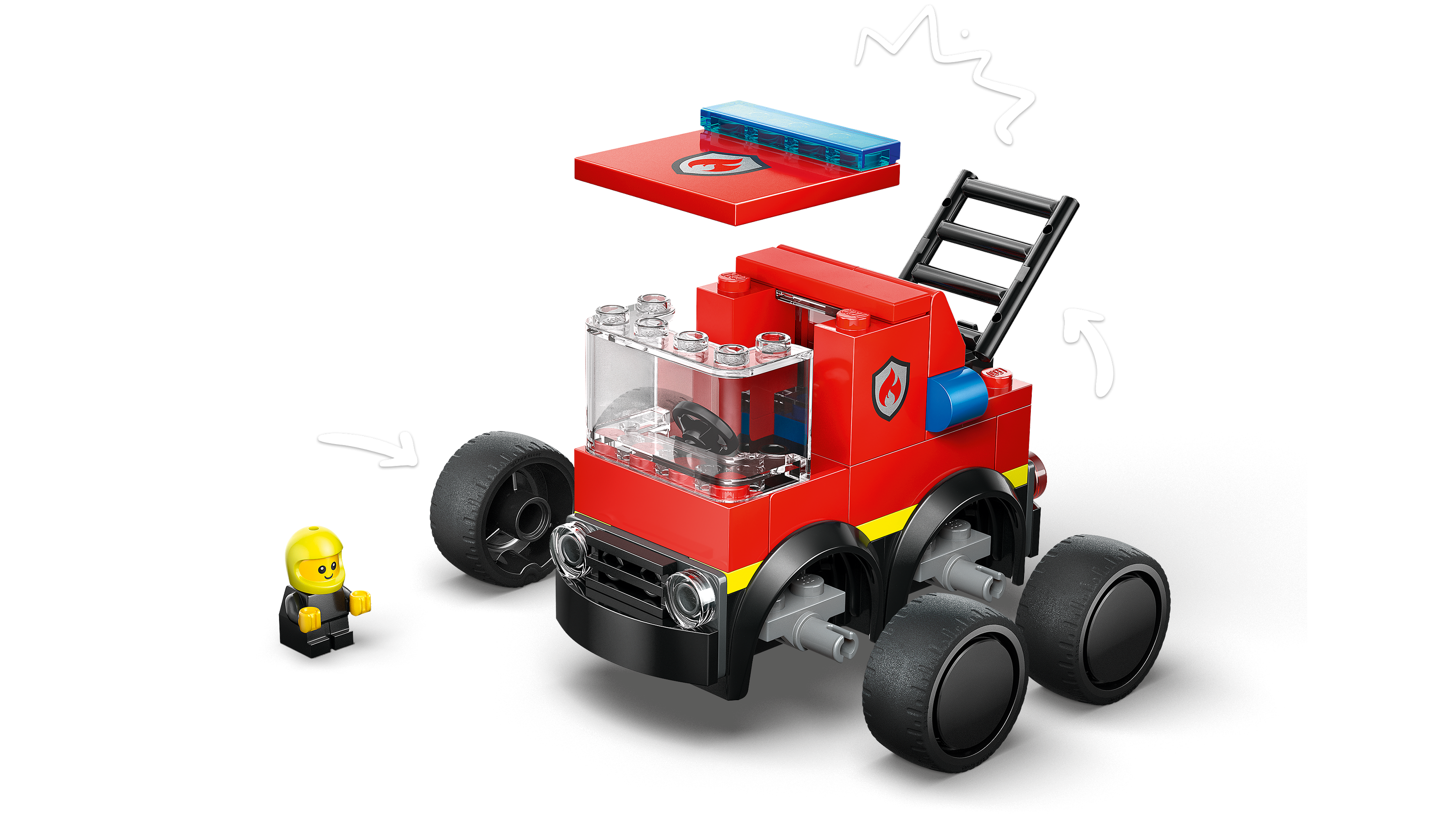 • FIREFIGHTER JUNIOR MINIFIGURE – Kids can pop the mini firefighter into the driver’s seat before setting out on exciting fire rescue missions