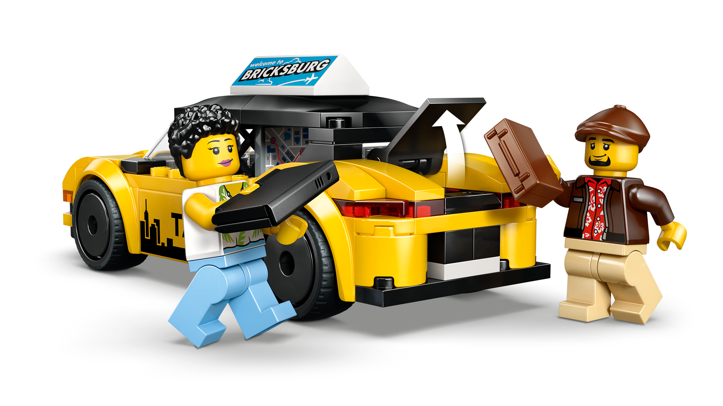 • FUN STICKERS AND MINIFIGURE ACCESSORIES – Includes GPS screen, taxi logo, advertisement and battery stickers for the toy vehicle, plus luggage accessories for the tourist minifigure