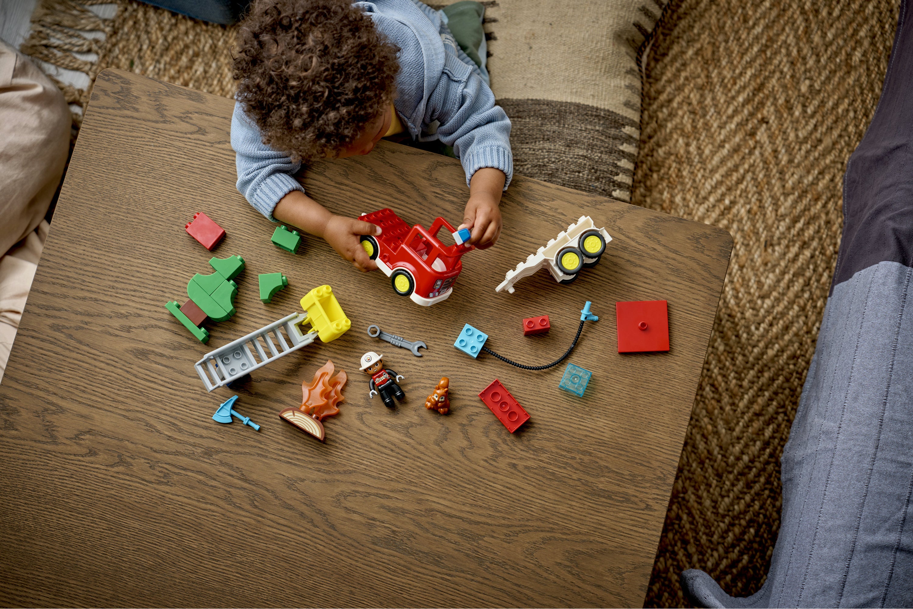 • LEGO® DUPLO® FIREFIGHTER TOY – This pretend play toy lets toddlers imagine they’re an everyday hero using the ladder to douse the burning log with the hose as a squirrel watches the action from afar