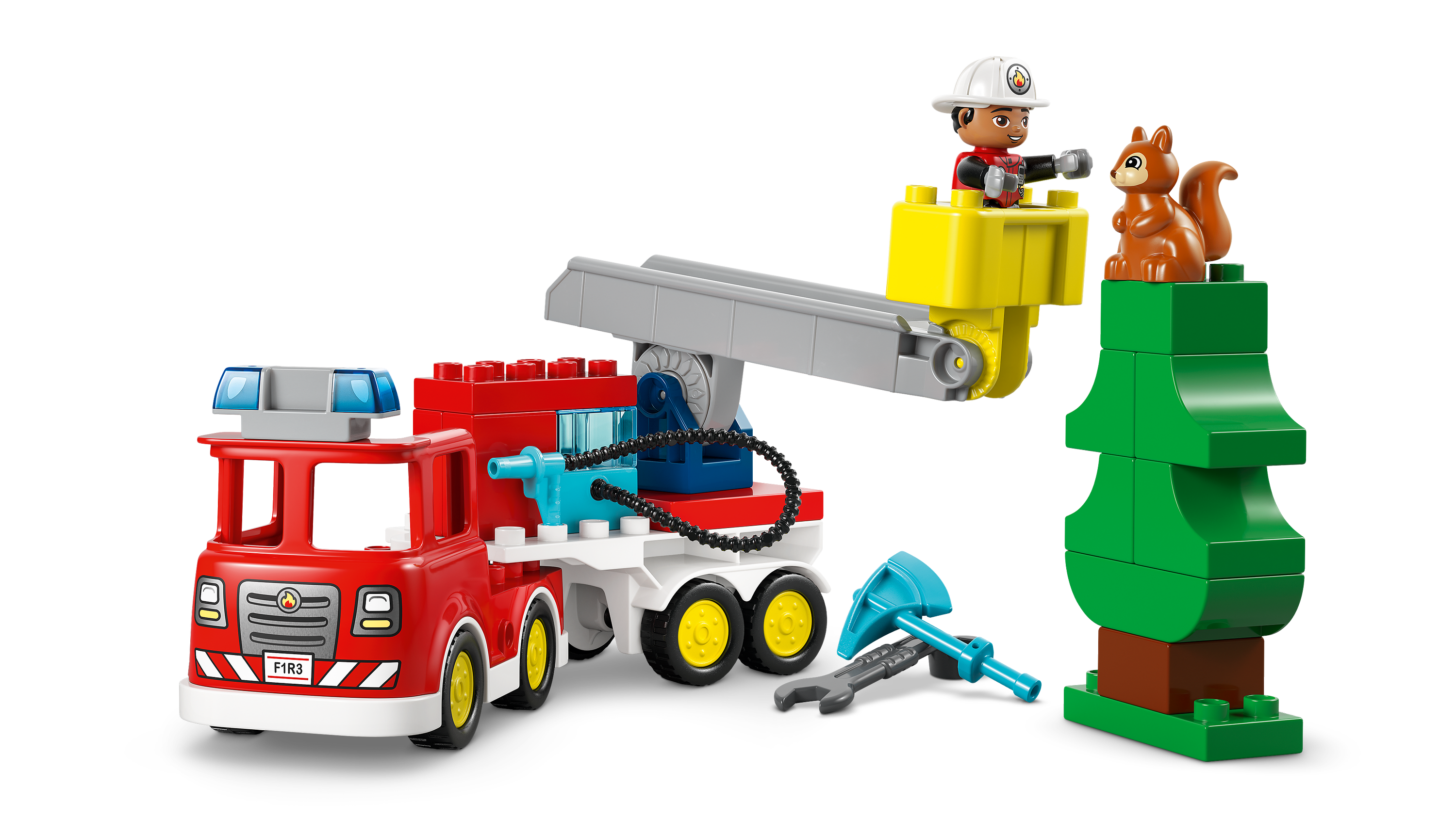 • PACKED WITH FUN FEATURES – Includes a fire truck model with detachable trailer, a firefighter figure, LEGO® DUPLO® squirrel, axe and wrench to encourage imaginative save-the-day play