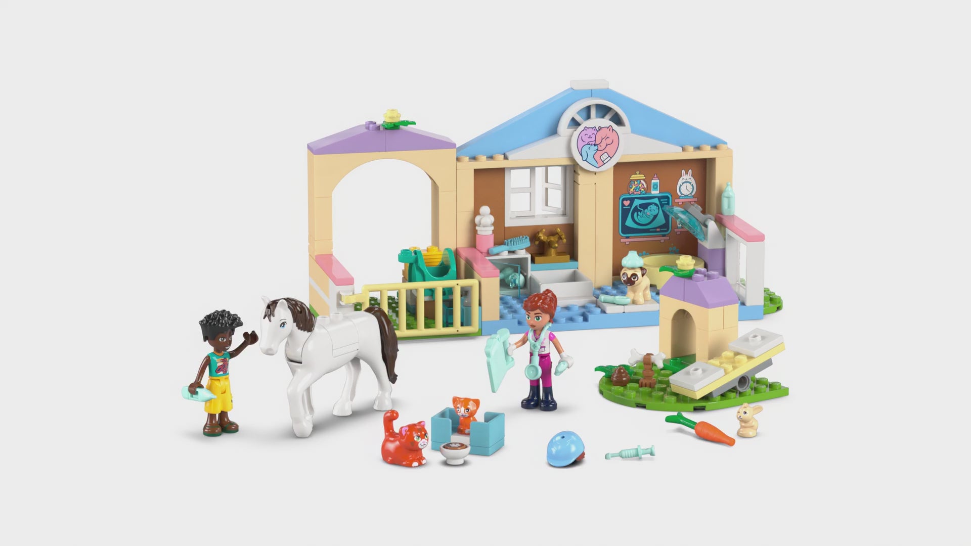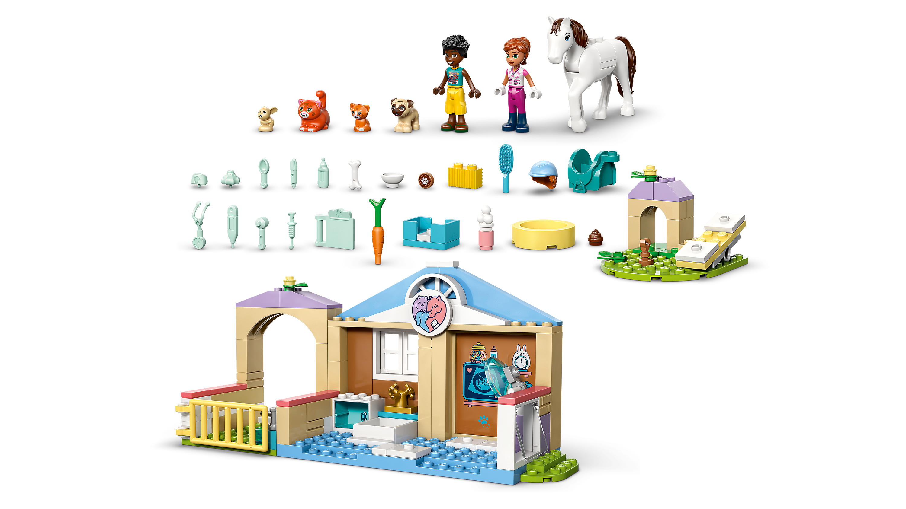 • CARE FOR THE PETS – The LEGO® Friends Animal Vet Clinic (42696) has everything kids need to tell animal care stories, including a toy horse stable, an examination room, a pet playground and more