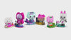 • 6 ANIMAL FIGURES – MerCat with a jewel, Baby Box with a painting of Gabby, Kitty Fairy with a watering can, Pandy Paws with a dollhouse, Cakey with a cake and Daniel James ‘DJ’ Catnip with a piano