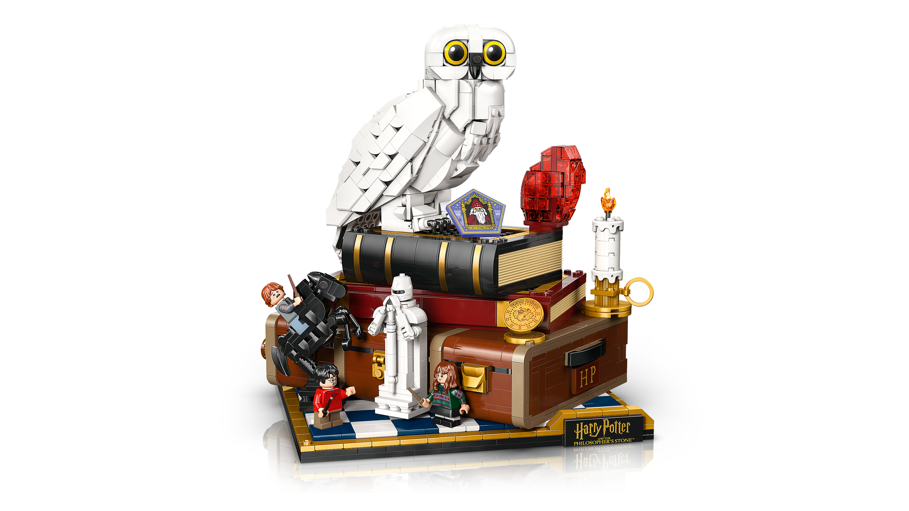 Build nostalgia for Harry Potter and the Sorcerer’s Stone™ with the LEGO® Harry Potter™ 25th anniversary Sorcerer’s Stone – Collectors’ Edition (76466). A top creative gift for adult Harry Potter fans, this collectible building set has fun functions, iconic characters and objects, plus microscale versions of classic scenes to inspire magical memories. Create the first LEGO Hedwig™ snowy owl figure with closed wings and display her next to the Sorcerer’s Stone on top of Harry Potter’s trunk. Add 3 LEGO Harry Potter minifigures – Harry Potter, Hermione Granger™ and ™ Ron Weasley™ – and items including a Chocolate Frog card and a Wizard Chessboard. Turn the 3 dials to turn Hedwig’s head, move the Queen on the Wizard Chessboard and blow the side off Harry Potter’s trunk to reveal the mountain troll’s bathroom attack scene. The other microscale scenes depict the Hogwarts™ Express and the 5 trials Harry faces to reach the Sorcerer’s Stone. Set contains 1,571 pieces.