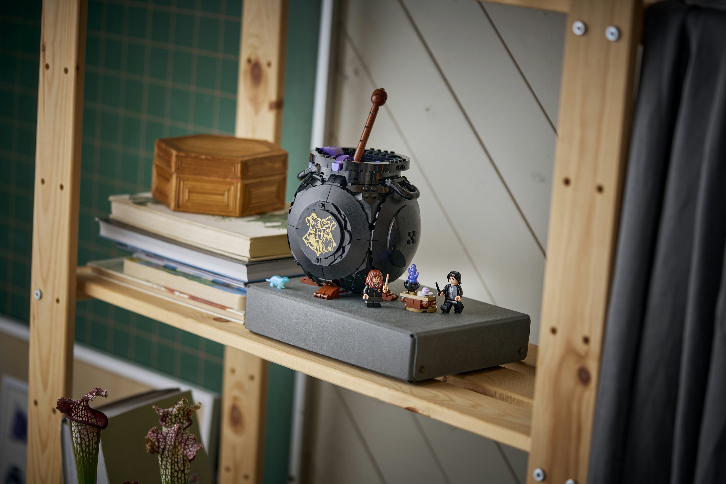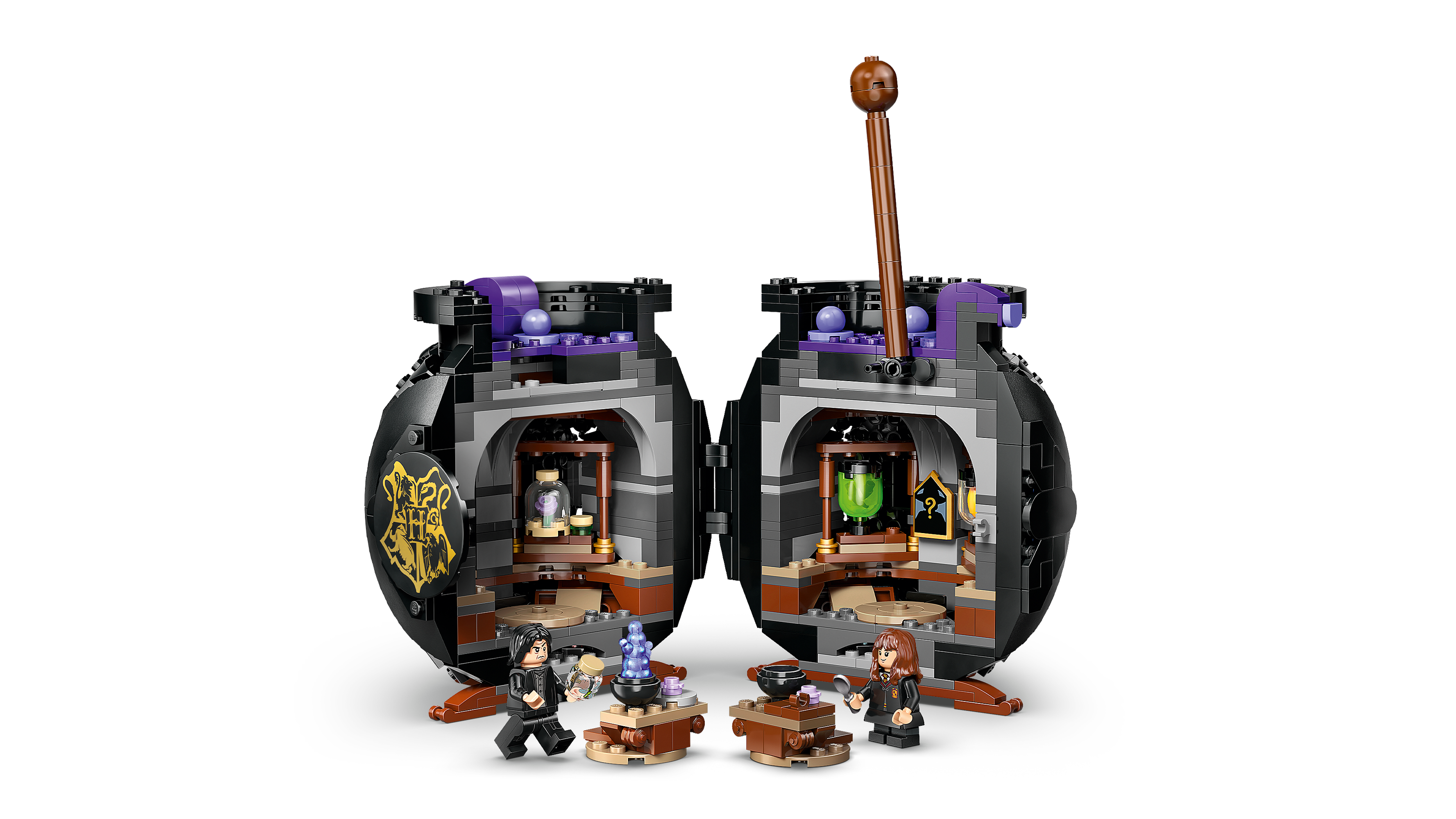 • SECRET CLASSROOM – Move the stirring stick and reveal the classroom with removable tables for easy play, a blackboard, potion bottles and LEGO® ingredients for Wolfsbane, Polyjuice and Love Potions