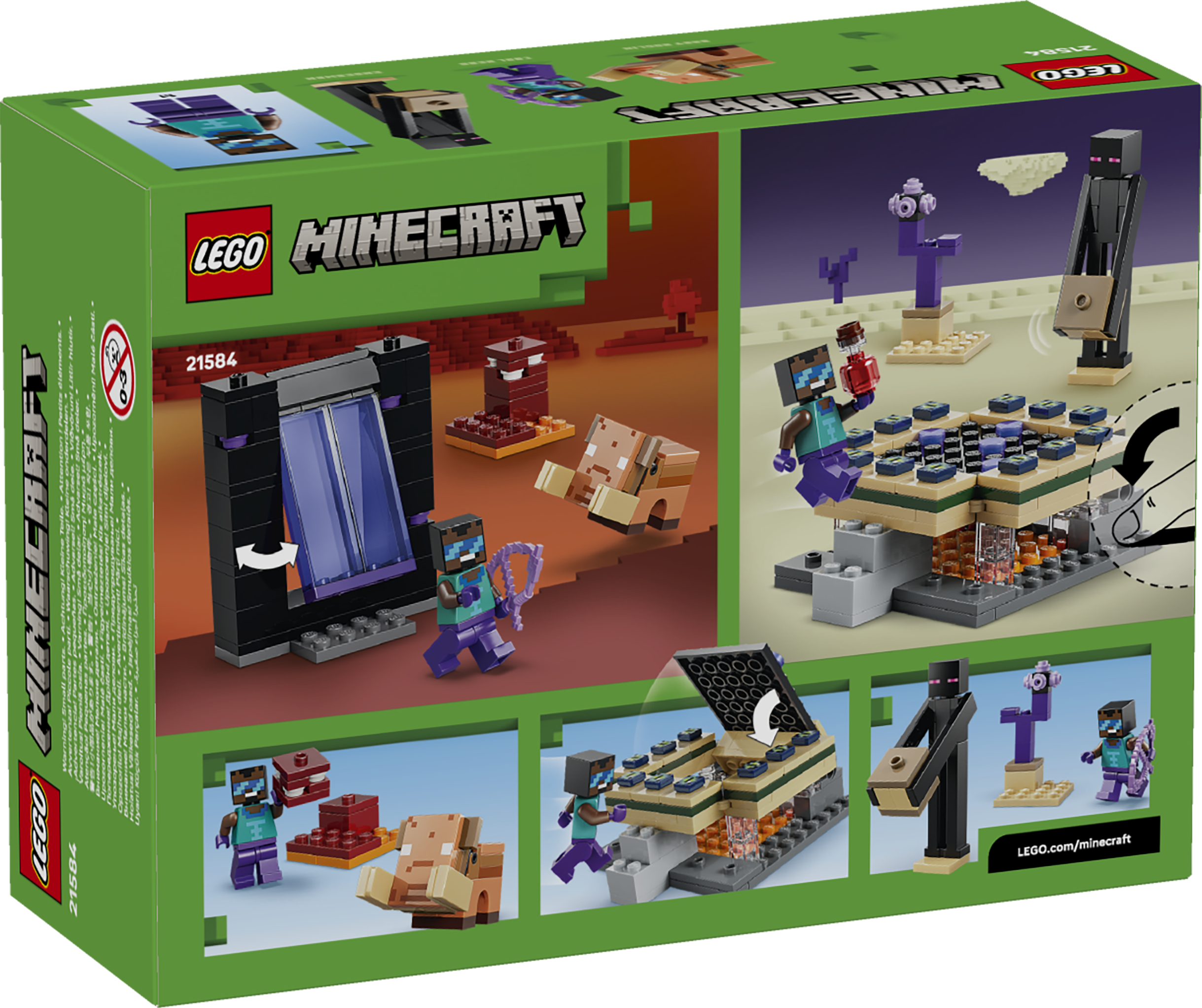 Take a Nether & End Portal Journey, where kids activate 2 LEGO® Minecraft® portals to enter new biomes and explore new adventures.Key Features