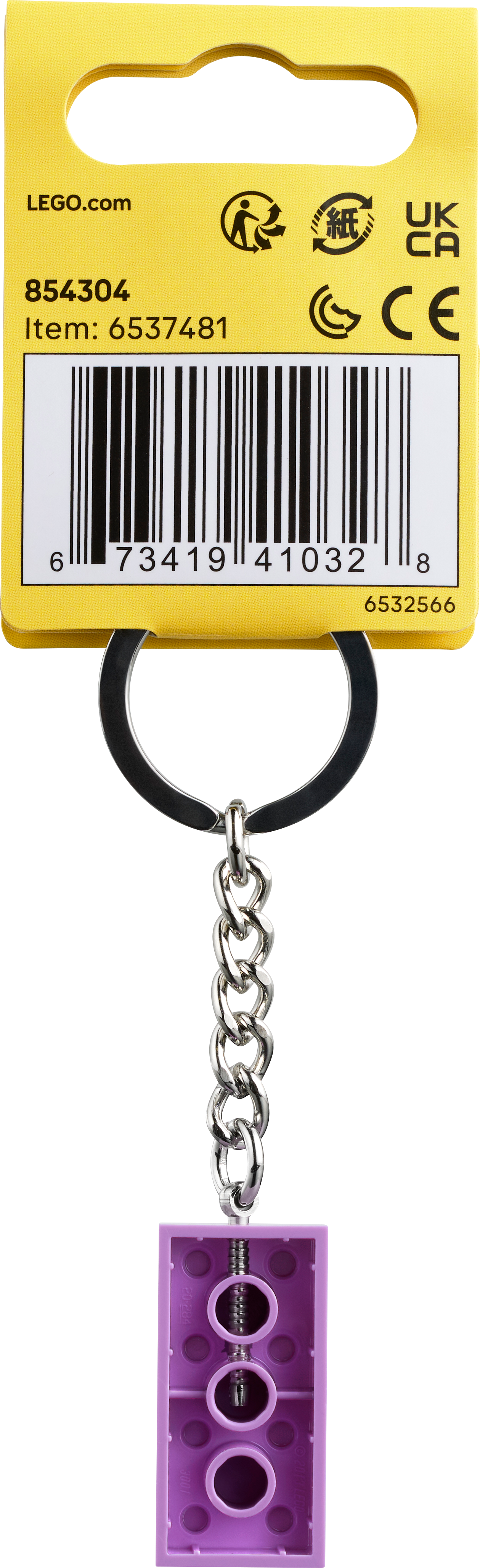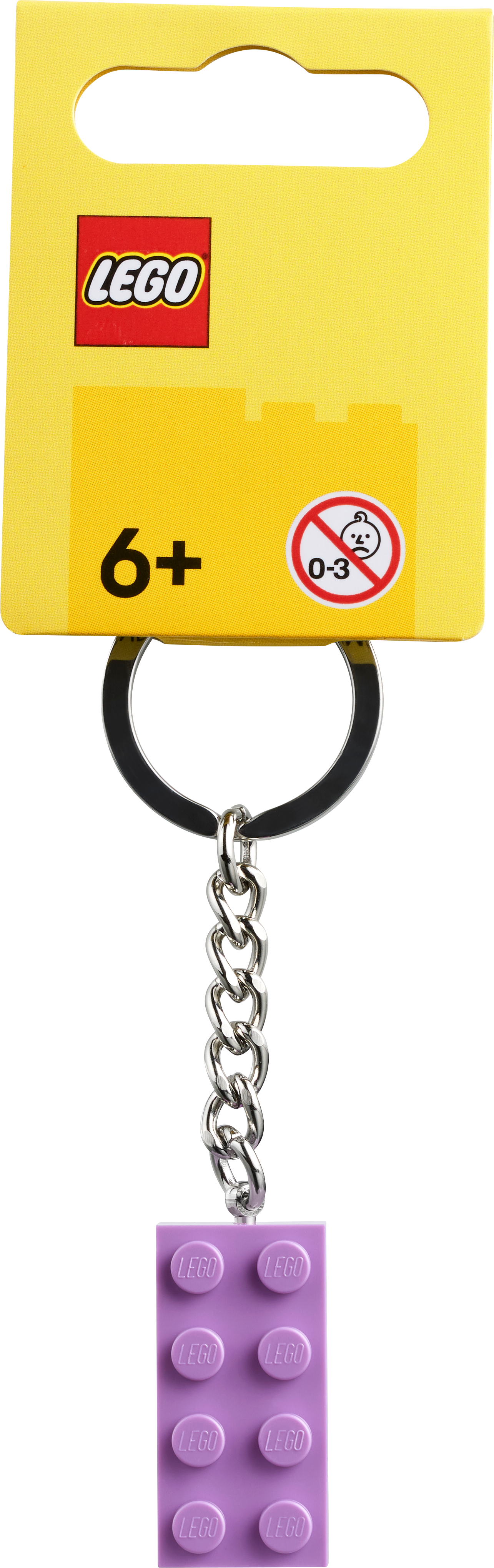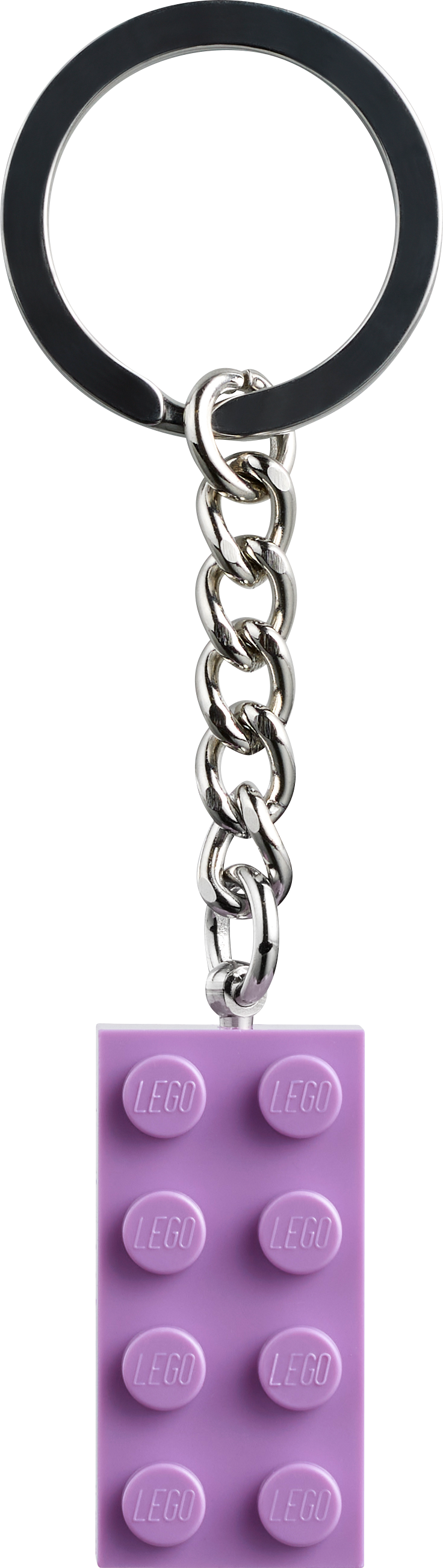 - Brick keyring – Features a medium lavender 2x4 stud brick (non-detachable) with a durable metal ring and chain