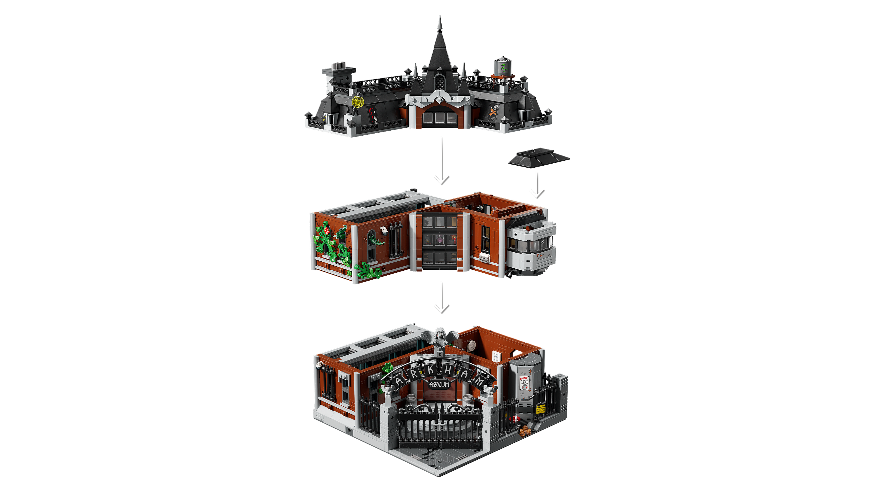 - The Arkham Asylum™ model has 2,953 pieces and measures over 32 cm (12.5 in.) high